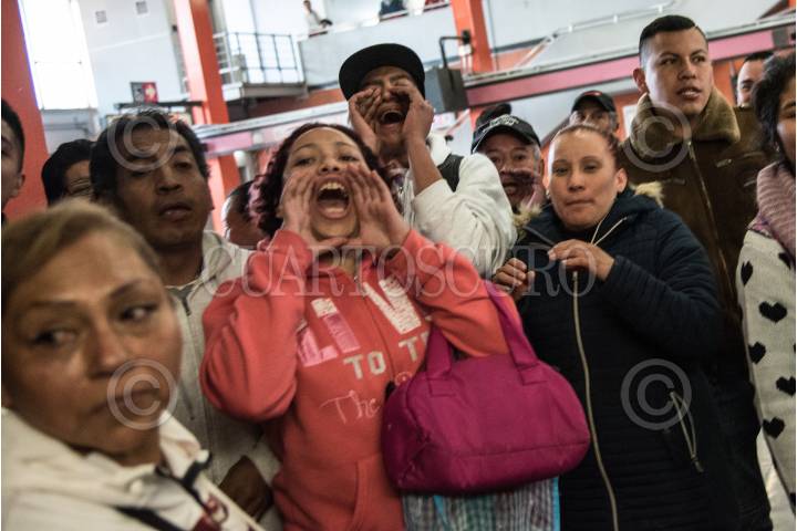 CIUDAD DE MÉXICO, 26DICIEMBRE2017.- Mikel Arriola, precandidato al gobierno de la ciudad por el Partido Revolucionario Institucional (PRI), viajó este martes en el sistema de Transporte Colectivo (STC) Metro. Partió desde la estación Observatorio de la línea 1 hasta Allende de la línea 2. En la imagen, personas se manifestaron en contra del precandidato priista. FOTO: MARIO JASSO /CUARTOSCURO.COM