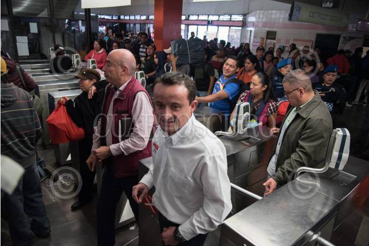 CIUDAD DE MÉXICO, 26DICIEMBRE2017.- Mikel Arriola, precandidato al gobierno de la ciudad por el Partido Revolucionario Institucional (PRI), viajó este martes en el sistema de Transporte Colectivo (STC) Metro. Partió desde la estación Observatorio de la línea 1 hasta Allende de la línea 2. FOTO: MARIO JASSO /CUARTOSCURO.COM