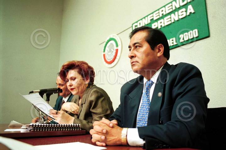El diputado del PRD Jorge Silva ( izq) ofreció una confrencia de prensa en la Cámara de Diputados, en compañía de la legisladora Alma Vucovich, para informar sobre detalles de la acción de quebrantos del Banco Nacional de Comercio Interior. FOTO: Germán Romero/CUARTOSCURO.COM