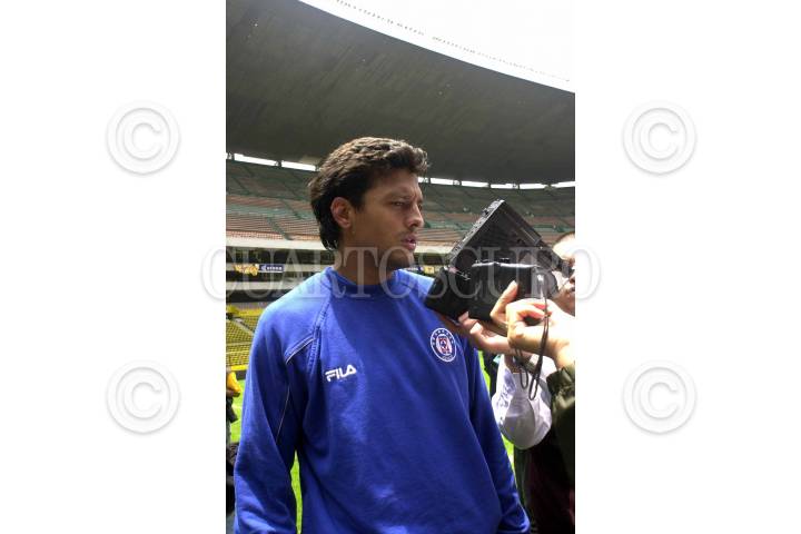 Sergio Almaguer, uno de los mas solicitados por la prensa mexicana y argentina alfinalizar el entrenamiento de la Máquina Cementera de Cruz Azul en el Coloso de Santa Usrula. FOTO: Pedro Mera/CUARTOSCURO.COM