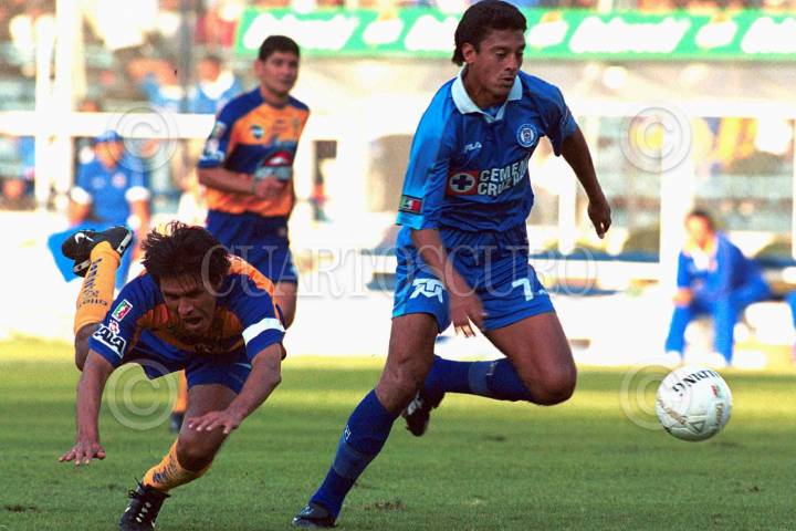 Sergio Almaguer dej atras al defensa de Tigres, el veterano Claudio Suarez, durante el juego de ida en una de las semifinales del torneo de invierno 2001 del Futbol Mexicano. FOTO: Pedro Mera/CUARTOSCURO.COM