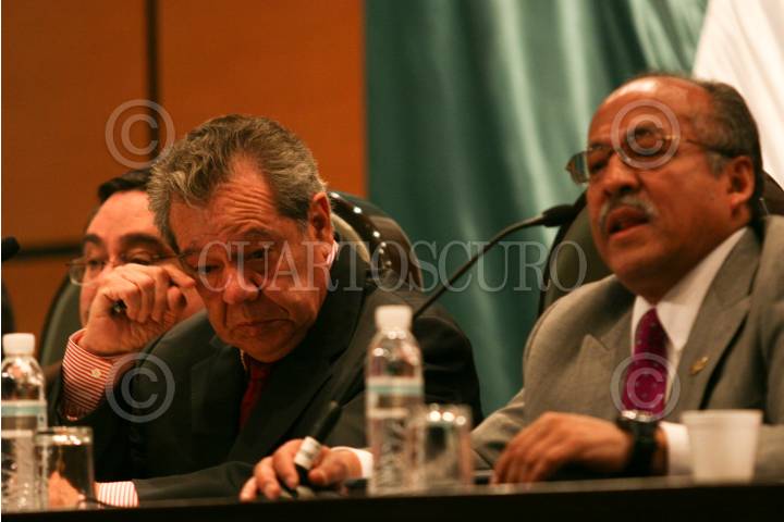 MÉXICO D.F. 28NOVIEMBRE2007.-El diputado del PRD, José Antonio Almazán González, acompañado de viudas y familiares de los mineros de Pasta de Conchos, durante su conferencia de prensa en las instalaciones en la Cámara de Diputados. FOTO: GUILLERMO PEREA/CUARTOSCURO.COM