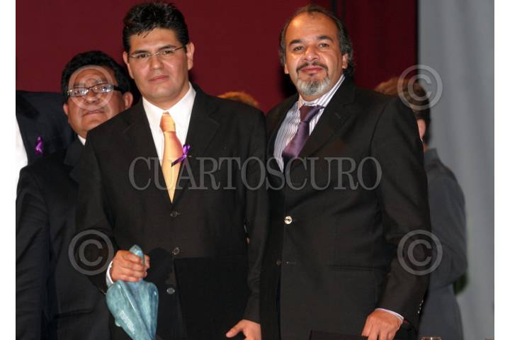 MÉXICO, D.F., 03MAYO2007.- El periodista Alejandro Almazán recibió el Premio Nacional de Periodismo 2006 por su trabajo Los Buchones presentado en la Revista Emeequis durante la ceremonia en el Lunario. FOTO: MOISÉS PABLO/CUARTOSCURO.COM