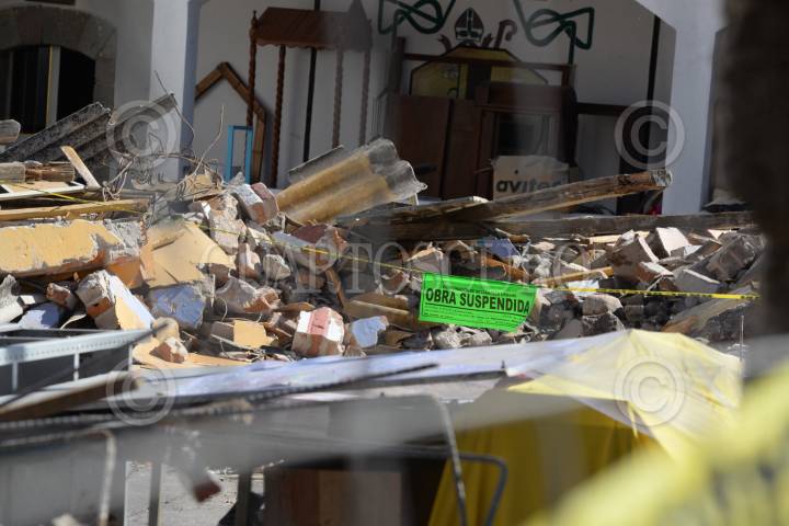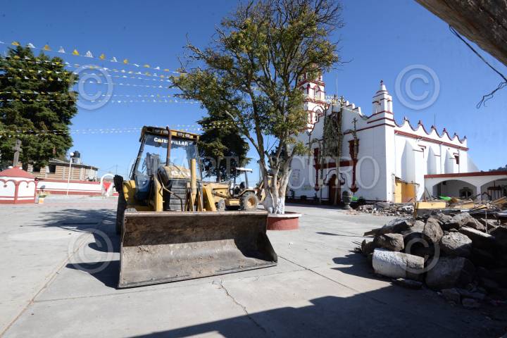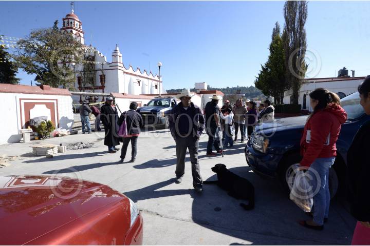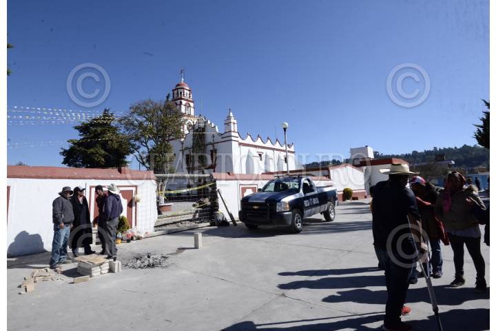 ALMOLOYA DE JUÁREZ, ESTADO DE MÉXICO, 24NOVIEMBRE2017.- Habitantes de San Miguel Almoloyan se organizaron para cuidar la iglesia de la comunidad, debido a que el párroco exhumó restos humanos que se encontraban en el atrio para poder ampliar la iglesia, lo que derivó en el enojo de la población y la suspensión de la obra, la mayoría de restos se encuentran entre montones de tierra en un terreno ubicado a un costado. FOTO: ARTEMIO GUERRA BAZ / CUARTOSCURO.COM