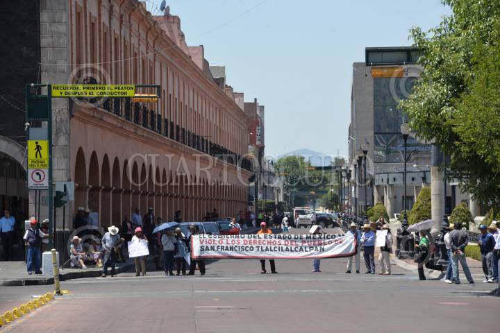 TOLUCA, ESTADO DE MÉXICO, 11JUNIO2018.- Alrededor de 200 Habitantes de San Francisco Tlalcilalcalpan, en Almoloya de Juárez, se manifestaron en Palacio de Gobierno para pedir el reconocimiento de este poblado como nuevo municipio en el Estado se México. FOTO: ARTEMIO GUERRA BAZ /CUARTOSCURO.COM