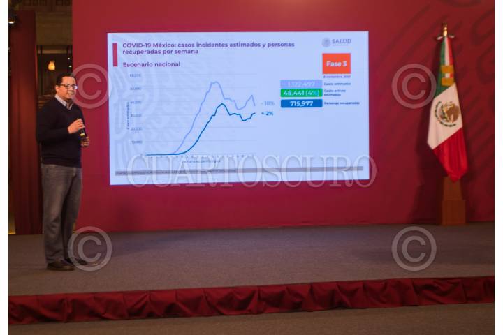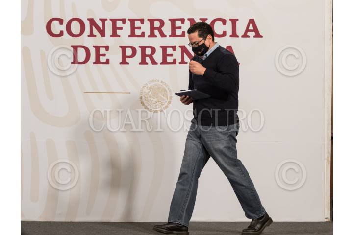 José Luis Alomía Zegarra, director de epidemiología de la Secretaría de Salud, durante la conferencia de informe COVID-19 que se lleva a cabo en Palacio Nacional.