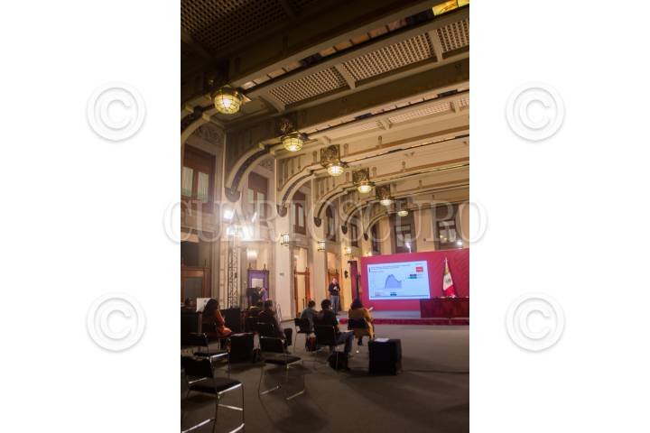 Hugo López Gatell y José Luis Alomía, en la conferencia de todas las tardes respecto a la situación del Covid 19 en el país, en el salón tesorería de Palacio Nacional.