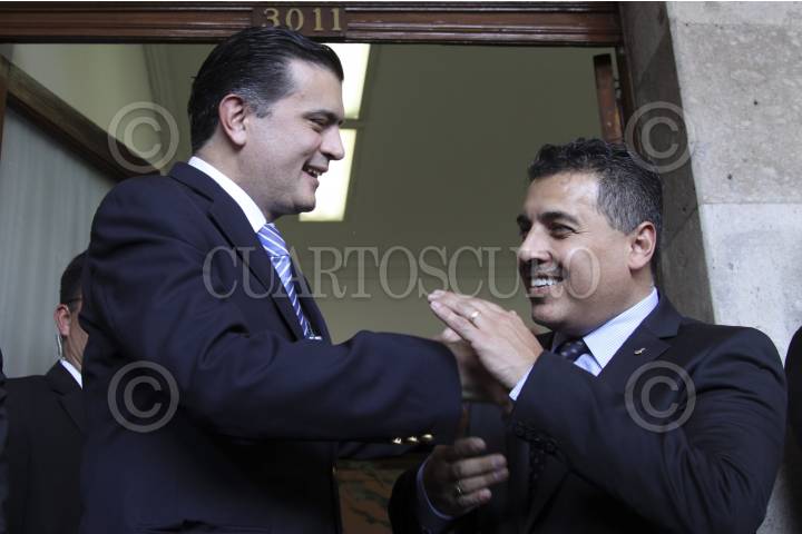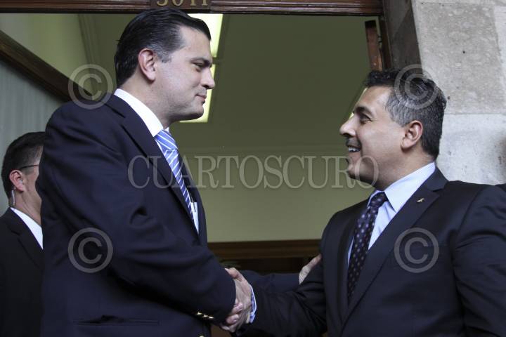ZACATECAS, ZACATECAS, 08SEPTIEMBRE2013.- Miguel Alonso Reyes, Gobernador de Zacatecas; César Camacho Quiroz, presidente nacional del PRI; Eruviel Ávila, gobernador del Estado de México; y César Duarte Jaquez, gobernador de Chihuahua; acudieron al tercer Informe de Gobierno del Gobernador de Zacatecas. FOTO: CUARTOSCURO.COM