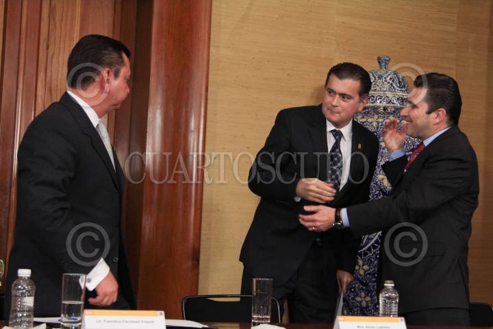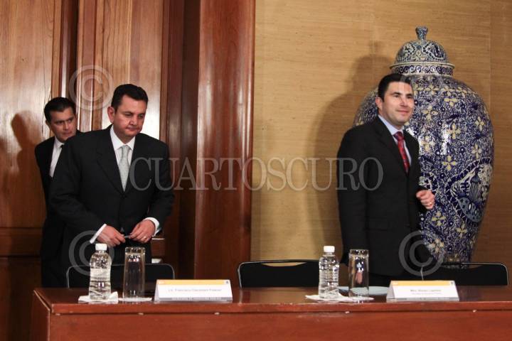 MEXICO, D.F., 30NOVIEMBRE2011.- Francisco ciscomani Freaner, nuevo Subsecretario de la Secretaría de Educación Pública (SEP), fue nombrado por Alonso Lujambio, Secretario de Educación Publica durante una conferencia donde se anuncio la renuncia de José Fernando González quien fungía como Subsecretario de Educación de la SEP. Dicho evento tuvo lugar en el Salon Simon Bolivar de la Secretaria de Educacion Publica. FOTO: ENRIQUE ORDOÑEZ/CUARTOSCURO.COM