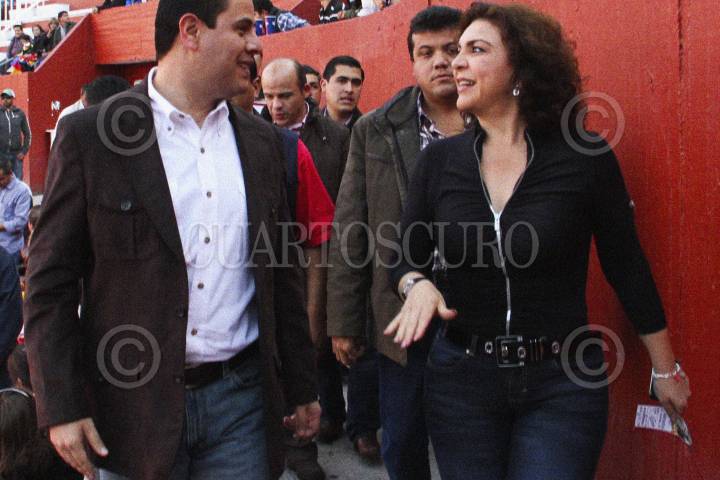 ZACATECAS, ZACATECAS, 11DICIEMBRE2011.- Los gobernadores, Miguel Alonso Reyes de Zacatecas e Ivonne Ortega de Yucatan durante la Corrida de Toros de la Feria Regional de Guadalupe que tuvo lugar en la plaza de toros del estado. FOTO: CUARTOSCURO.COM