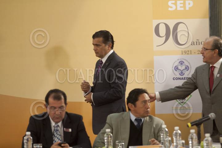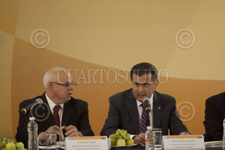 MÉXICO, D.F., 14DICIEMBRE2011.- Rodolfo Tuirán, subsecretario de Educación Media, y Alonso Lujabio Irazabal, encabezaron la Vigésima Séptima Reunión Nacional Plenaria Ordinaria del Consejo Nacional de Autoridades Educativas en la sede de la SEP. FOTO: MOISÉS PABLO/CUARTOSCURO.COM