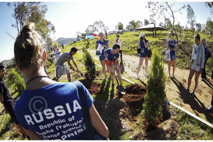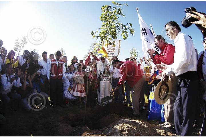 ZACATECAS, ZACATECAS., 31JULIO2013.- El gobernador Miguel Alonso Reyes e integrantes de las delegaciones que participan en el Festival Zacatecas del Folclor Internacional Gustavo Vaquera Contreras, plantaron el Árbol de la amistad a fin de estrechar los lazos de unión que propicia la música y la danza. FOTO: EDGAR CHÁVEZ /CUARTOSCURO.COM