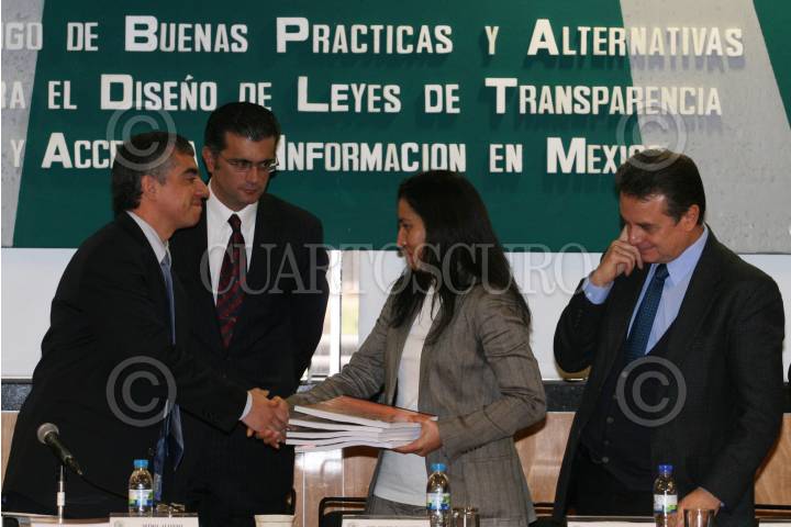 MÉXICO D.F. 24OCTUBRE2007.-Se realizó la entrega del Codigo de Buenas Practicas y Alternativas para el Diseño de Leyes de Transparencia y Accseso a la Información ante a la presidencia de la Cámara de Diputados.En la imagen Sergio López Aylón Secretario General del CIDE, Alonzo Lujambio Presidente del CIDE, Ruth Zavaleta diputada del PRD y presidente de la mesa directiva y el Senador, Joaquín Coldwel. FOTO: GUILLERMO PEREA/CUARTOSCURO.COM