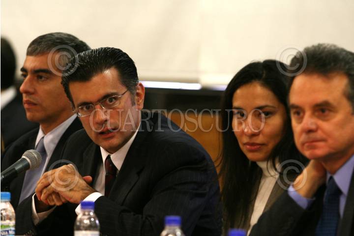 MÉXICO D.F. 24OCTUBRE2007.-Sergio López Aylón Secretario General del CIDE, realizó la entrega del Codigo de Buenas Practicas y Alternativas para el Diseño de Leyes de Transparencia y Accseso a la Información ante a la pressidencia de la Cámara de Diputados. En la Imagen es acompañado por Alonzo Lujambio Presidente del CIDE, Ruth Zavaleta diputada del PRD y presidente de la mesa directiva y el Senador, Joaquín Coldwel el Senador. FOTO: GUILLERMO PEREA/CUARTOSCURO.COM
