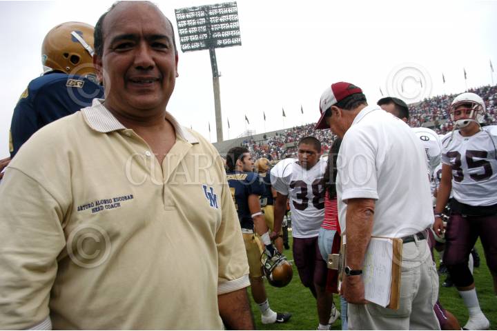 MÉXICO D.F. 9SEPTIEMBRE2006.- Pumas CU venció con marcador de 9-7 a las Águilas Blancas del IPN, en juego de temporada de liga mayor 2006 de futból americano, que se llevo acabo en el Estadio Olímpico Univarsitario. Arturo Alonzo Escobar, entrenador en jefe del equipo de los Pumas y Jacinto Licea entrenador de las Águilas Blancas, al termino del encuentro. FOTO. GUILLERMO PEREA/CUARTOSCURO.COM