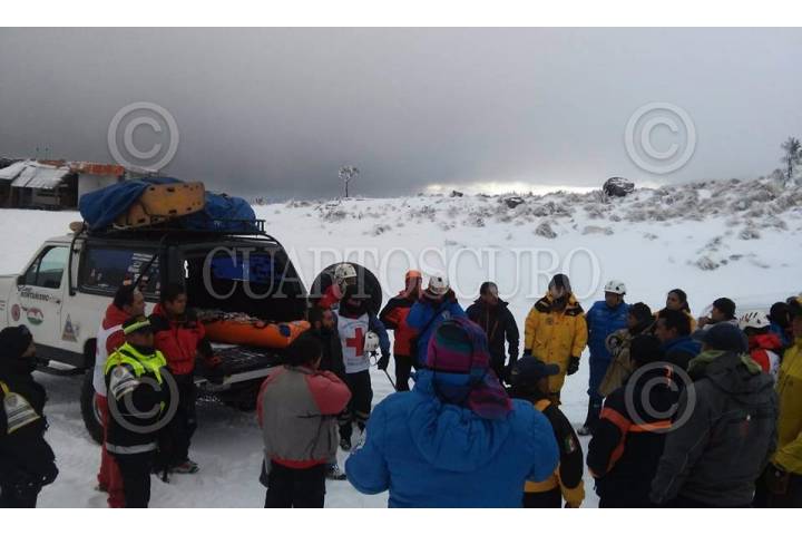 AMECAMECA, ESTADO DE MÉXICO, 11MARZO2016.- Personal de Protección Civil de Amecameca, rescatistas de la Cruz Roja y Policías de Alta Montaña apoyaron el rescate del cuerpo de un ciudadano norteamericano que sufrió un infarto cuando intentaba subir a las faldas del volcán Iztlacciuatl acompañado de un grupo de alpinistas. FOTO: PC AMECAMECA /CUARTOSCURO.COM