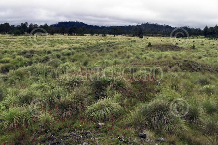 Un bosque deforestado con zacatonal alpino rodea las cavernas del volcán Yecahuazac, ubicadas al sur de Milpa Alta.