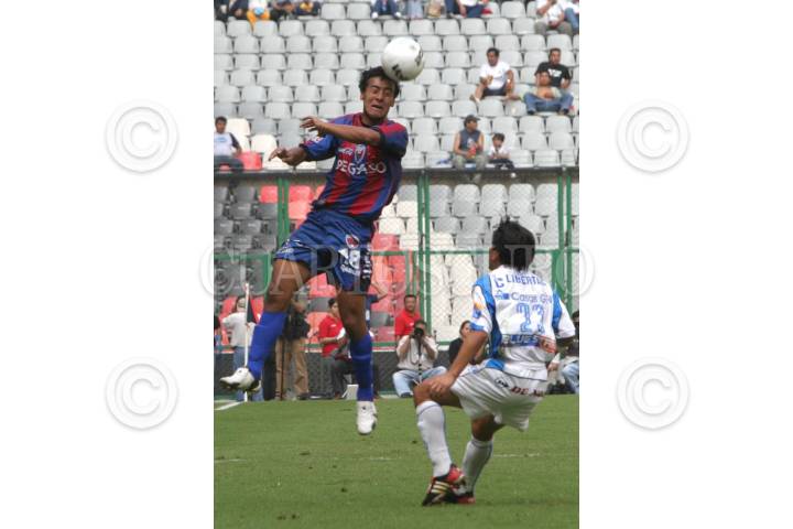 MEXICO, D.F. 31OCTUBRE2004.- Abdiel Villa (Atlante) disputó un balón con Raúl Alpizar (Puebla) en el partido de la jornada 13 del torneo de apertura 2004 en el que Atlante venció 2 goles a 1 a Puebla. FOTO: Iván Stephens/CUARTOSCURO.COM
