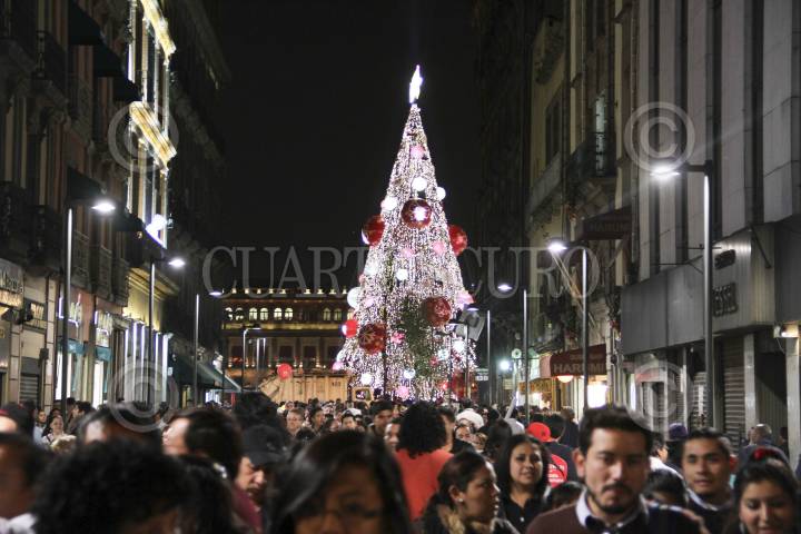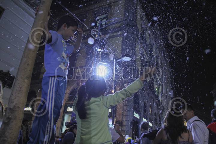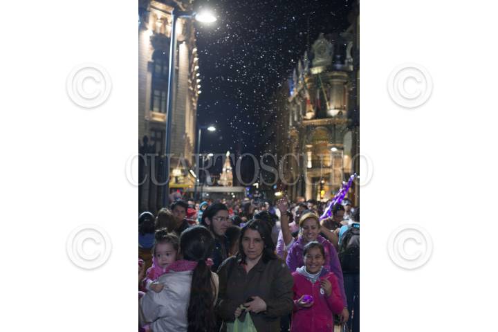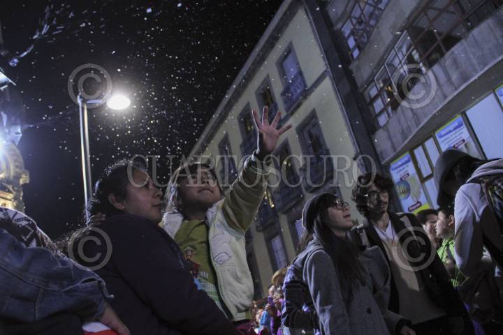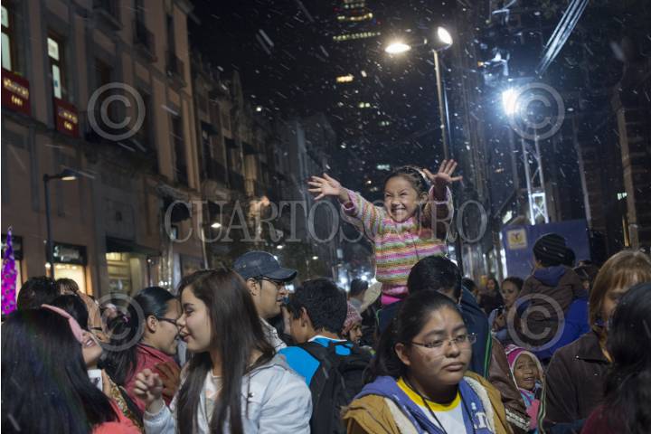 MÉXICO, D.F., 06DICIEMBRE2013.- Nieve artificial comenzó a caer esta noche sobre la calle Madero, como parte del programa que el Gobierno del Distrito Federal tiene por las fiestas navideñas. FOTO: ADOLFO VLADIMIR /CUARTOSCURO.COM
