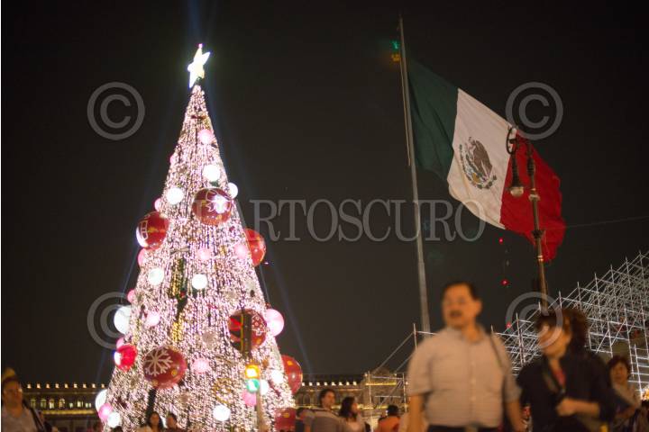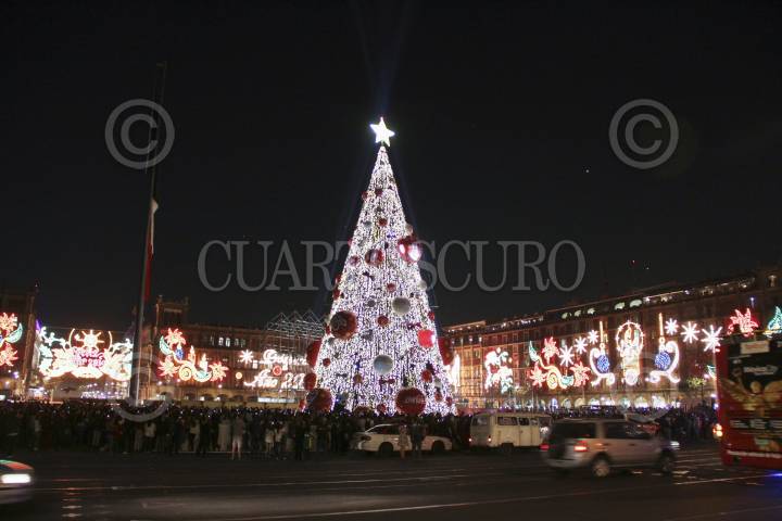 MÉXICO, D.F., 06DICIEMBRE2013.- Esta noche fue encendido en el Zócalo capitalino el árbol navideño de la empresa refresquera, el cual tiene una altura de 40 metros. Además fueron encendidas las luces para estas fiestas de cembrinas. FOTO: ADOLFO VLADIMIR /CUARTOSCURO.COM