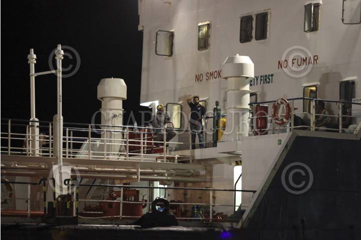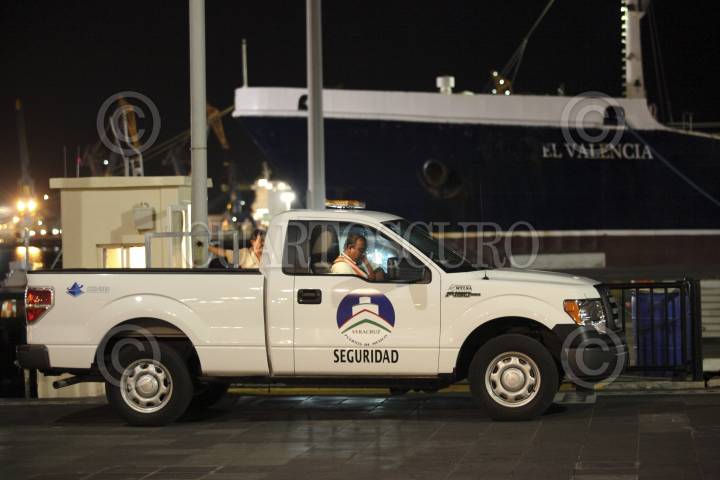 VERACRUZ, VERACRUZ., 20AGOSTO2012.- Autoridades federales y de la Administración Portuaria Integral confirmaron el arribo no programado de la embarcación "El Valencia", de bandera panameña, esto debido al fallecimiento en altamar de una mujer la cual perdió una de sus extremidades inferiores y una superior por lo que murió desangrada en lo que presuntamente se debió a un accidente laboral. FOTO: FÉLIX MÁRQUEZ /CUARTOSCURO.COM