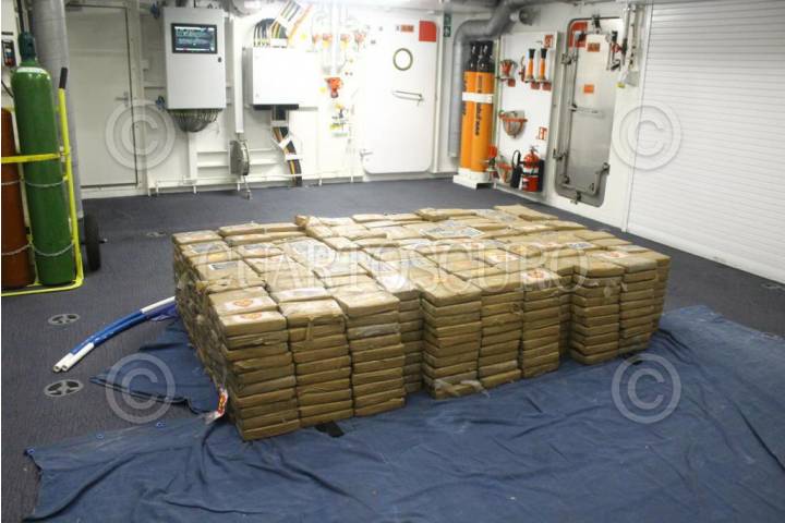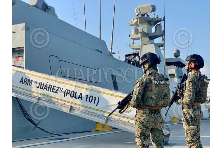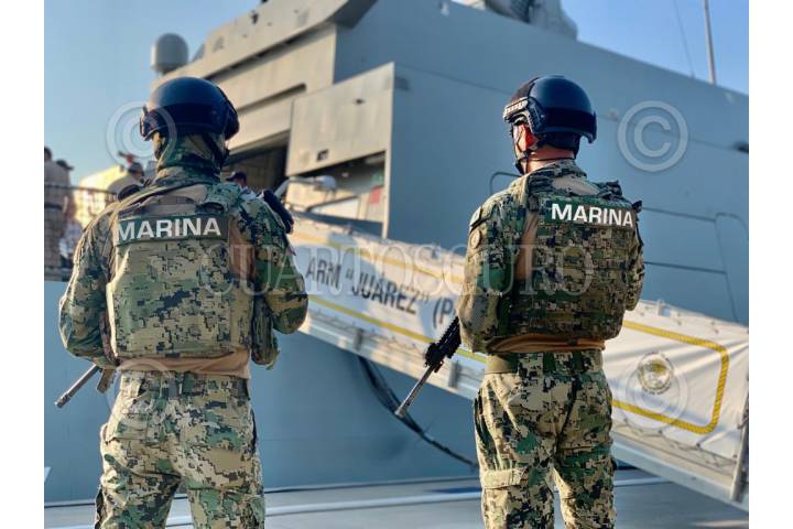 La Secretaría de Marina-Armada de México aseguró 1100 paquetes de presunta carga ilícita y una embarcación con siete tripulantes a costasa de Colima.