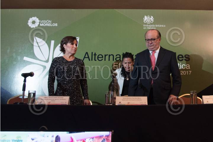 CIUDAD DE MÉXICO, 12JUNIO2017.- Rosario Robles Berlanga, secretaria de Desarrollo Agrario, Territorial y Urbano, Graco Ramírez, gobernador de Morelos, y Duncan Taylor, Embajador de Reino Unido en el país, durante la conferencia de prensa del Foro Alternativas Verdes 2017 "Eficiencia Energética". FOTO: TERCERO DÍAZ /CUARTOSCURO.COM