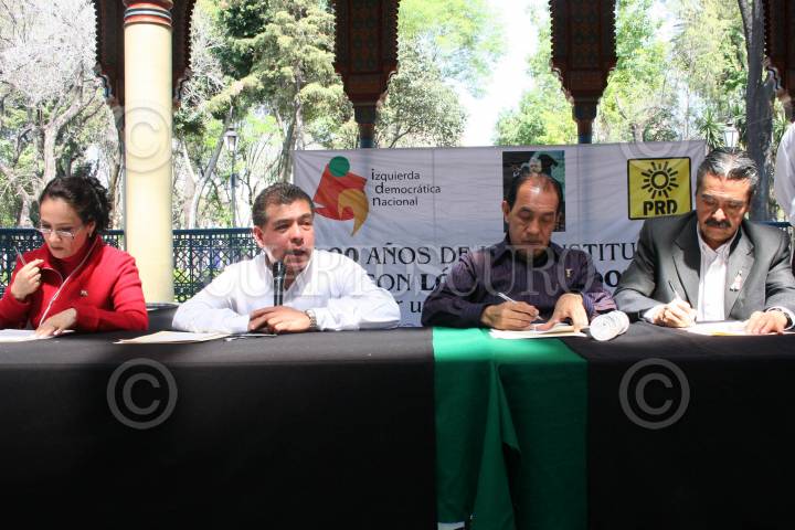 MÉXICO, D.F., 17FEBRERO2007.- Acompañado por Dolores Padierna, secretaria de Planeación del PRD, el delegado de Cuauhtémoc, José Luis Muñoz Soria, y el diputado Agustín Guerrero, el secretario de Hacienda Pública del gobierno legítimo, Mario Di Costanzo, ofreció una conferencia en el quiosco Morisco. FOTO: ISAAC ESQUIVEL/CUARTOSCURO.COM
