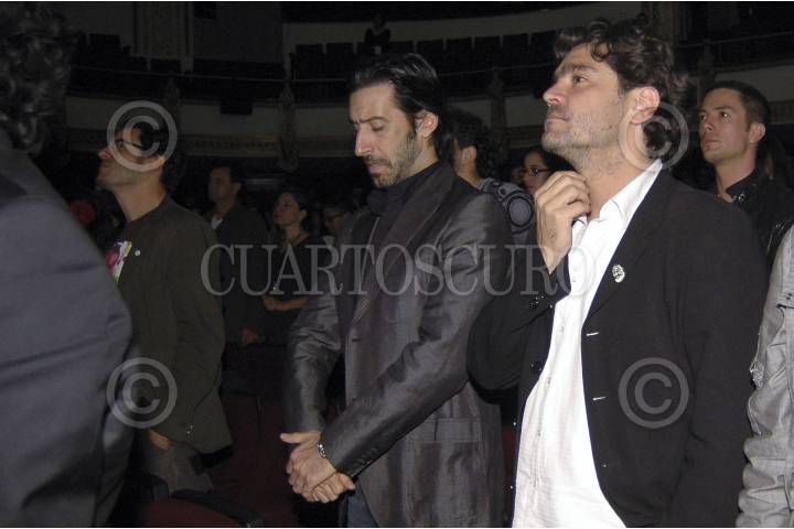 MÉXICO, D.F., 05SEPTIEMBRE2011.- Los actores José María Yazpik y Martín Altomaro guardaron un minuto de silencio por las 50 mil víctimas de la guerra contra el narco la noche de hoy en el Teatro Esperanza Iris en el marco del estreno de la película de Gerardo Naranjo "Miss Bala" FOTO: FRANCISCO RODRÍGUEZ/CUARTOSCURO.COM