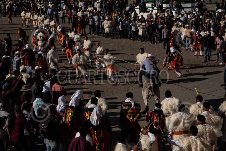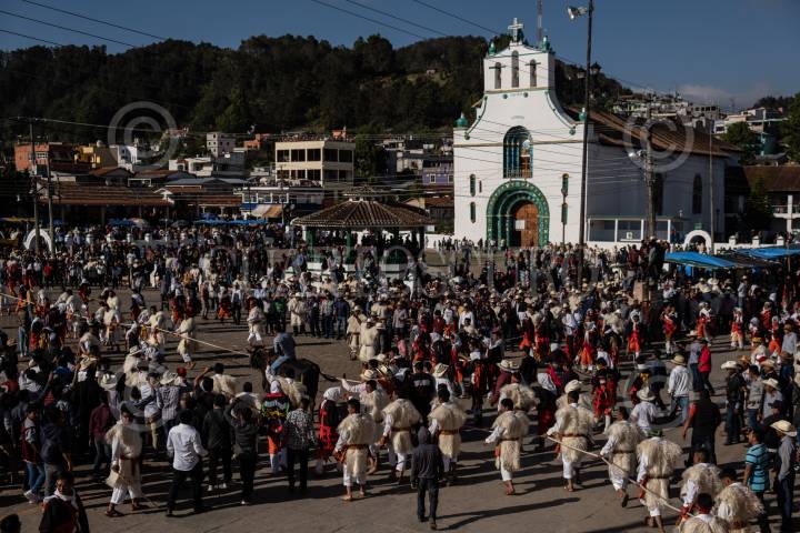 Cientos de personas disfrutan el Carnaval de San juan Chamula en la plaza central.