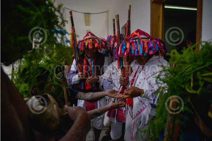 Los Nit Vacash o jaladores de toro, alistan su indumentaria para salir al Carnaval.
