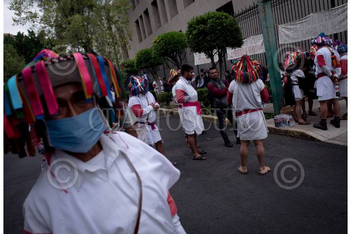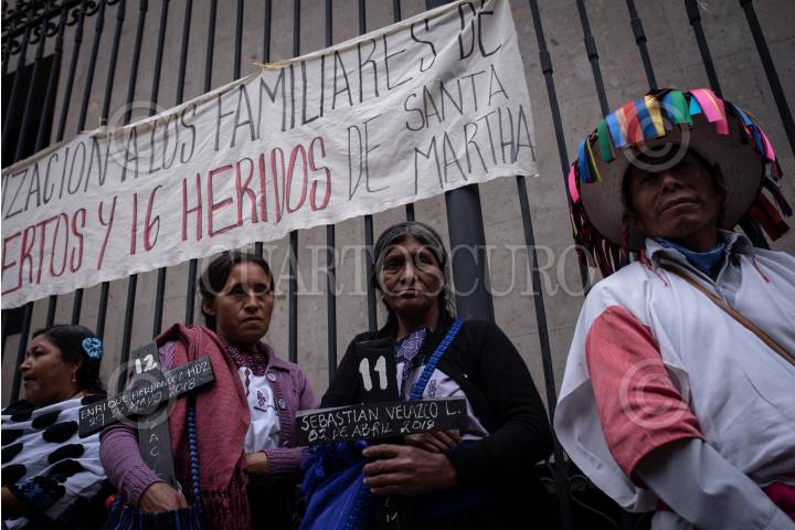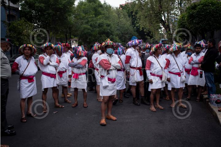 Pobladores de la comunidad de Santa Martha, perteneciente al municipio de Chenalhó, Chiapas, esperan, a las afueras de la Secretaría de Gobernación, a un grupo de representantes de su comunidad.