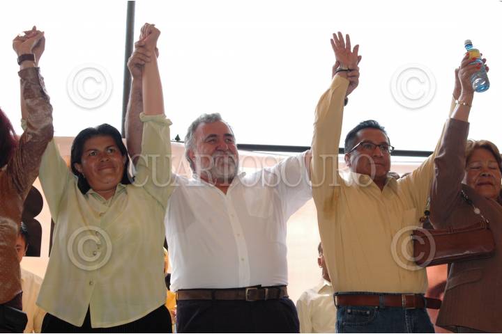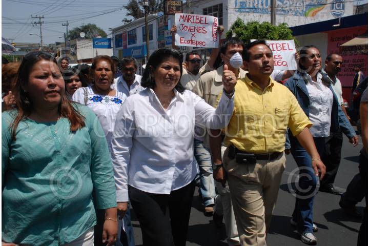 ECATEPEC, ESTADO DE MÉXICO, 23MAYO2009.- La candidata del PRD a la presidencia municipal de Ecatepec, Maribel Alva Olvera, mostró su seguridad de que esta fuerza política obtendrá “carro completo” en la elección del próximo 5 de julio. La campaña de la aspirante del partido del sol azteca recibió este sábado el respaldo del dirigente nacional de la expresión Izquierda Unida, Alejandro Encinas, quien llamó a votar por una mujer que hará historia al convertirse en la primera alcaldesa del municipio más poblado de América Latina. FOTO: MARIO NULO/CUARTOSCURO.COM