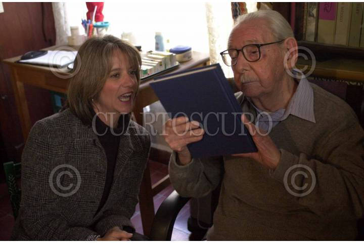 La periodiosta Adriana Malvido y el fotógrafo Manuel Alvarez Bravo, quien cumplirá el próximo 4 de febrero 100 años . Foto: Pedro Valtierra/Cuartoscuro