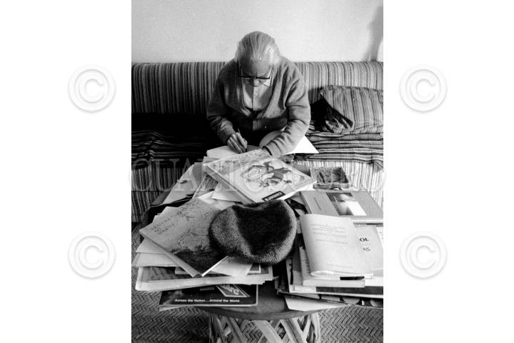 Manuel Alvarez Bravo en su casa de Coyoacán, acompañado de Fabiola Garduño, Adriana Malvido y Saul Serrano. Foto: Pedro Valtierra/Cuartoscuro
