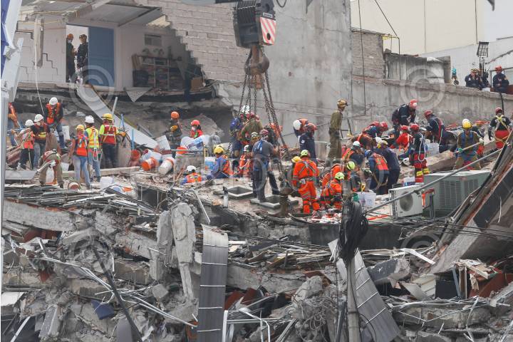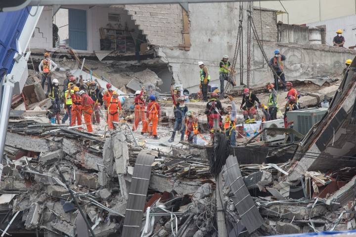 CIUDAD DE MÉXICO., 22SEPTIEMBRE2017.- Socorristas de Israel, Estados Unidos, Japón y México, continúan las labores de rescate en el edificio derrumbado en Álvaro Obregón número 289, además presuntamente afirman que entre 40 y 42 personas aún continúan atrapadas dentro de los escombros del edificio. FOTO: MARIO JASSO /CUARTOSCURO.COM