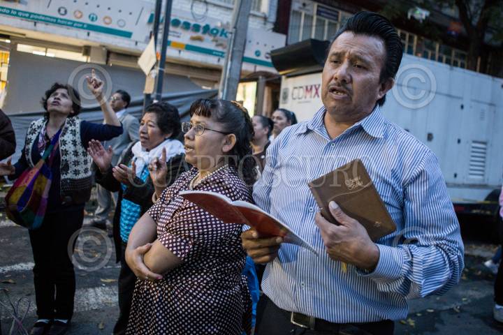 CIUDAD DEMÉXICO, 27SEPTIEMBRE207.- Algunas personas se reunieron en el perímetro del edifio colapsado en Álvaro Obregón para realizar cantos religiosos y oraciones. FOTO: TERCERO DÍAZ /CUARTOSCURO.COM