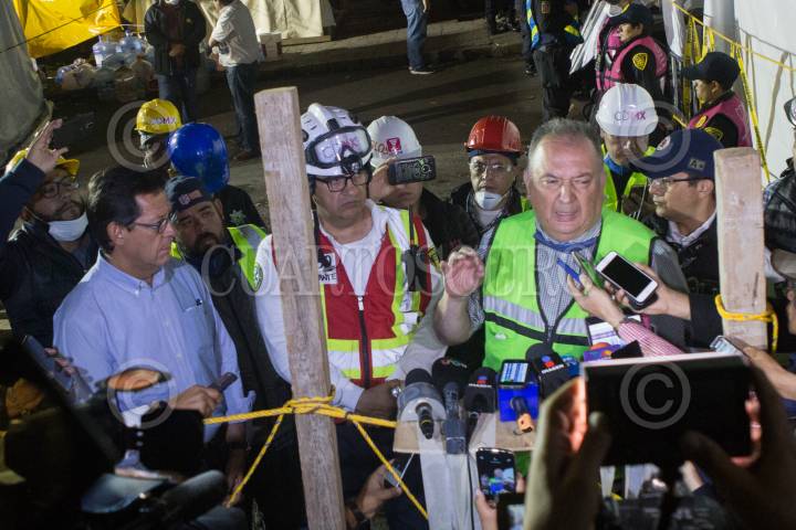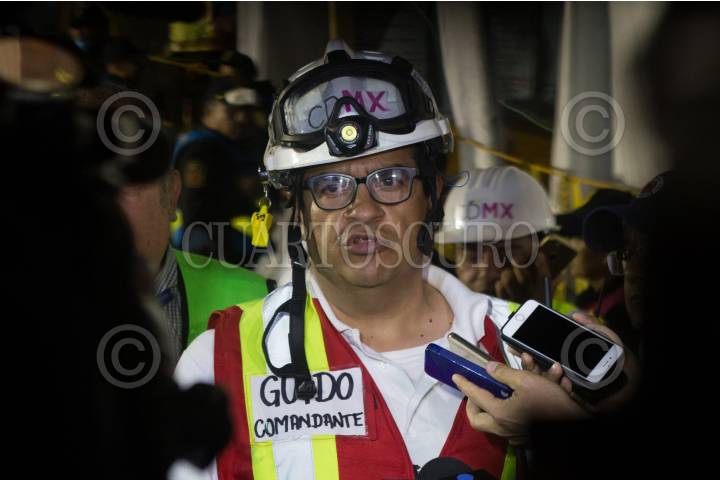 CIUDAD DEMÉXICO, 27SEPTIEMBRE207.- Guido Sánchez, comandante de rescate, participó en una conferencia de prensa en el edificio colapsado de Álvaro Obregón, donde anunciaron que hasta el día de hoy han rescatado 21 cuerpos sin vida en dicho predio. FOTO: TERCERO DÍAZ /CUARTOSCURO.COM