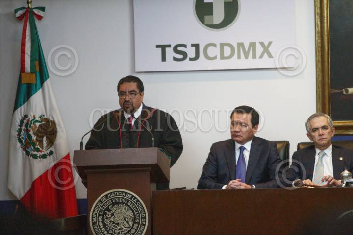 CIUDAD DE MÉXICO, 07DICIEMBRE2017.- Álvaro Augusto Pérez Juárez, presidente del Tribunal Superior de Justicia de la Ciudad de México, rindió su primer informe de labores en la sede del TSJCDMX. Lo acompaño el Jefe de Gobierno, Miguel Ángel Mancera, y Miguel Angel Osorio Chong, secretario de Gobernación. FOTO: MOISÉS PABLO /CUARTOSCURO.COM