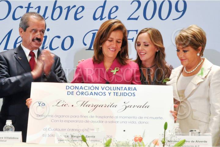 MÉXICO D.F. 08OCTUBRE2009.- Jose Ángel Cordova Villalobos, Secretario de Salud junto a la primera dama, Margarita Zavala y Adriana Castro de Alverde presidenta de la asociación de ALE y la comunicadora Lolita Ayala durante el foro México en la donación de órganos donde Margarita firmo su tarjeta de donación de órganos. FOTO: EDUARDO MORALES/CUARTOSCURO.COM