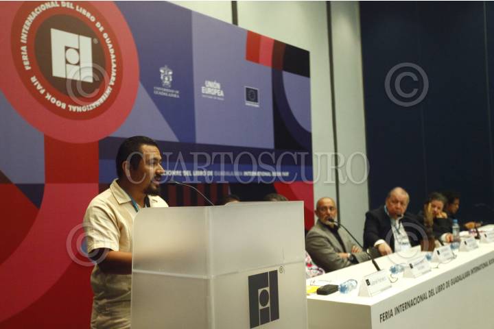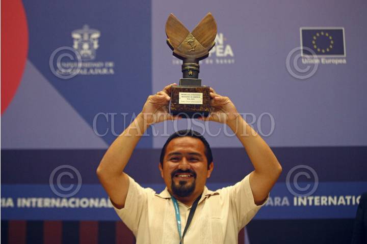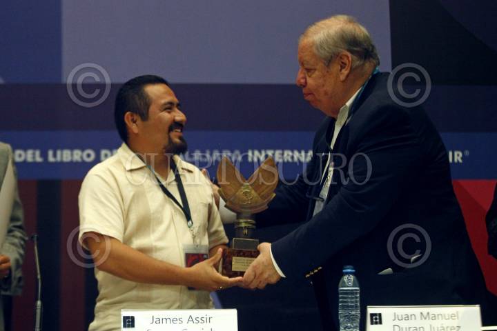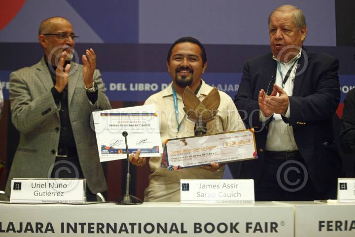 GUADALAJARA, JALISCO. 01DICIEMBRE2023.- Esta tarde en las instalaciones del Foro FIL de la Expo y en el marco de la edición 37 de la Feria Internacional del Libro de Guadalajara (FIL) que tiene como invitado de honor, la Unión Europea, se llevo a cabo la entrega del Premio de Literaturas Indígenas de América 2023, a James Assir Sarao Cauich. FOTO: FERNANDO CARANZA GARCIA / CUARTOSCURO.COM