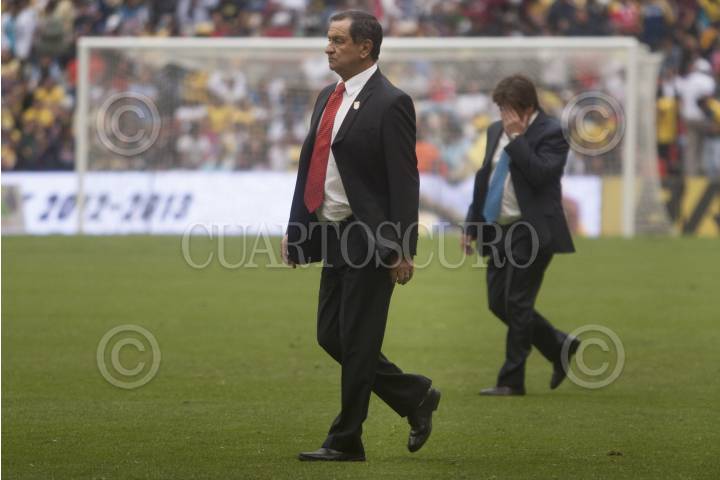 MÉXICO, D.F., 16FEBRERO2013.- Los directores técnicos, Enrique Meza de los Diablos Rojos del Toluca y Miguel Herrera del Club America, repartieron puntos la tarde de hoy en el Estadio Azteca en el marco de la fecha 7 del torneo de Liga Mx, al empatar a dos tantos por bando. FOTO: FRANCISCO J. RODRÍGUEZ /CUARTOSCURO.COM