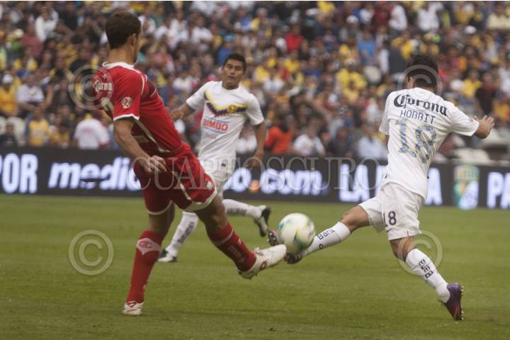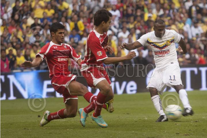 MÉXICO, D.F., 16FEBRERO2013.- Los equipos de Futbol, Club América, y los Diablos Rojos del Toluca, empataron a dos tantos la tarde de hoy en el Estadio Azteca en el marco de la fecha 7 del torneo de LIga Mx FOTO: FRANCISCO J. RODRÍGUEZ /CUARTOSCURO.COM
