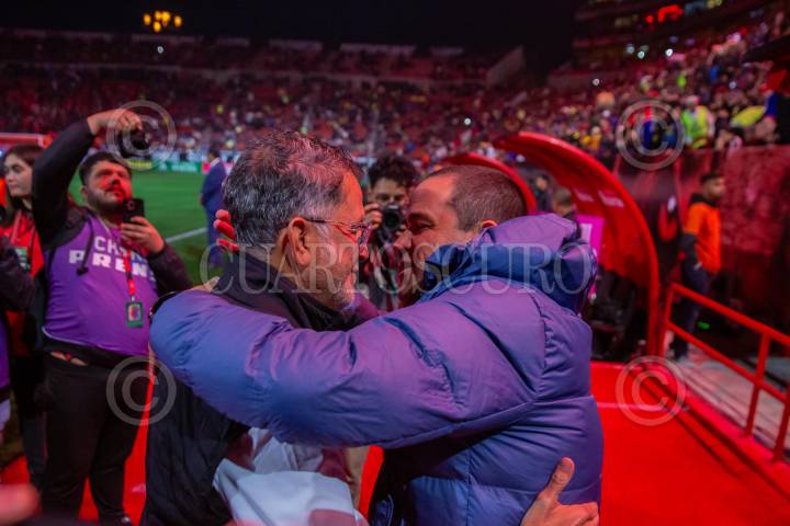 TIJUANA BAJA CALIFORNIA, 21NOVIEMBRE2024.-Juan Carlos Osorio, director del equipo de Xolos de Tijuana y André Jardine, director del equipo del América. Xolos pierde en penales contra América, aún mantiene esperanza de liguilla. Los Xolos de Tijuana igualaron 2-2 con el América, actual bicampeón del fútbol mexicano, en su partido del play-in disputado en el Estadio Caliente. Sin embargo, en la tanda de penales, el equipo fronterizo cayó 3-2, perdiendo así su primera oportunidad de avanzar directamente a los cuartos de final de la fiesta grande del fútbol mexicano. A pesar del tropiezo, Xolos aún tiene una última oportunidad de clasificar a la liguilla. Su posición en la tabla general los coloca frente al Atlas en un duelo crucial el próximo domingo. Este partido único definirá el pase a los cuartos de final y la continuidad de los Xolos en la lucha por el campeonato.La afición fronteriza se mantiene esperanzada de que su equipo pueda sobreponerse y asegurar su lugar en la fase final del torneo.FOTO: CHRIS NOYOLA/CUARTOSCURO.COM