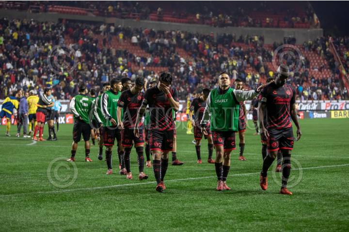 TIJUANA BAJA CALIFORNIA, 21NOVIEMBRE2024.-Equipo de Xolos de Tijuana al finalizar el partido. Xolos pierde en penales contra América, aún mantiene esperanza de liguilla. Los Xolos de Tijuana igualaron 2-2 con el América, actual bicampeón del fútbol mexicano, en su partido del play-in disputado en el Estadio Caliente. Sin embargo, en la tanda de penales, el equipo fronterizo cayó 3-2, perdiendo así su primera oportunidad de avanzar directamente a los cuartos de final de la fiesta grande del fútbol mexicano. A pesar del tropiezo, Xolos aún tiene una última oportunidad de clasificar a la liguilla. Su posición en la tabla general los coloca frente al Atlas en un duelo crucial el próximo domingo. Este partido único definirá el pase a los cuartos de final y la continuidad de los Xolos en la lucha por el campeonato.La afición fronteriza se mantiene esperanzada de que su equipo pueda sobreponerse y asegurar su lugar en la fase final del torneo.FOTO: CHRIS NOYOLA/CUARTOSCURO.COM
