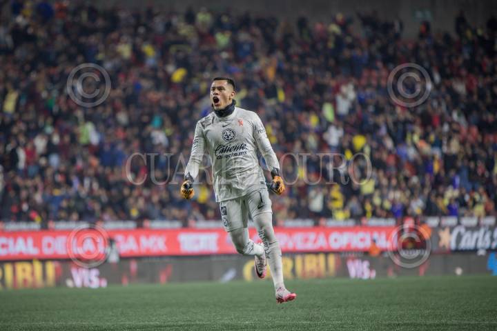 TIJUANA BAJA CALIFORNIA, 21NOVIEMBRE2024.-Luis Malagon, portero del equipo del America. Xolos pierde en penales contra América, aún mantiene esperanza de liguilla. Los Xolos de Tijuana igualaron 2-2 con el América, actual bicampeón del fútbol mexicano, en su partido del play-in disputado en el Estadio Caliente. Sin embargo, en la tanda de penales, el equipo fronterizo cayó 3-2, perdiendo así su primera oportunidad de avanzar directamente a los cuartos de final de la fiesta grande del fútbol mexicano. A pesar del tropiezo, Xolos aún tiene una última oportunidad de clasificar a la liguilla. Su posición en la tabla general los coloca frente al Atlas en un duelo crucial el próximo domingo. Este partido único definirá el pase a los cuartos de final y la continuidad de los Xolos en la lucha por el campeonato.La afición fronteriza se mantiene esperanzada de que su equipo pueda sobreponerse y asegurar su lugar en la fase final del torneo.FOTO: CHRIS NOYOLA/CUARTOSCURO.COM