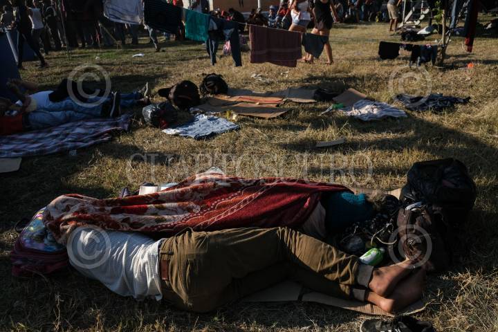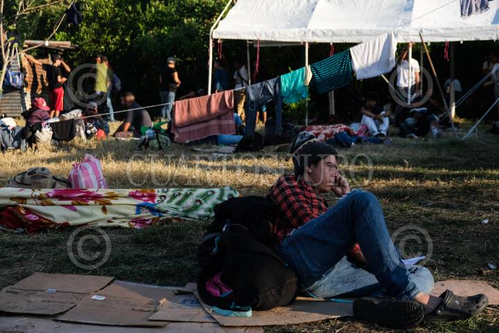 Migrantes Centroamericanos descansan en un albergue provisional.