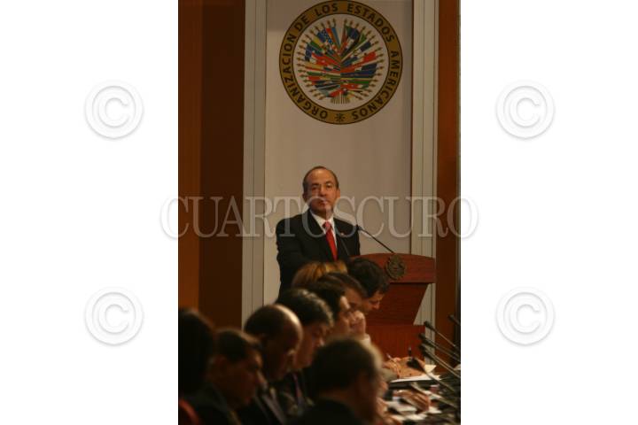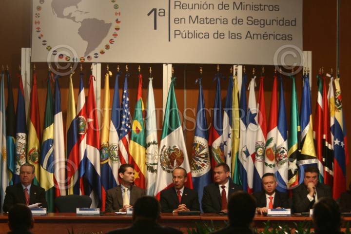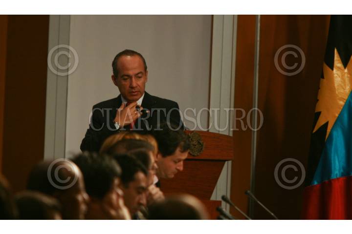 MÉXICO, D.F., 07OCTUBRE2008.- Felipe Calderon Hinojosa, Presidente de México inaguró esta mañana los trabajos de la primera reunión de ministros en materia de seguridad pública de las Américas. FOTO: SÁSHENKA GUTIÉRREZ/CUARTOSCURO.COM