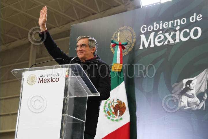 NUEVO LAREDO, TAMAULIPAS, 08DICIEMBRE2024.- Américo Villarreal, gobernador de Tamaulipas, durante el evento "Programas para el Bienestar en Tamaulipas". FOTO: PRESIDENCIA/CUARTOSCURO.COM