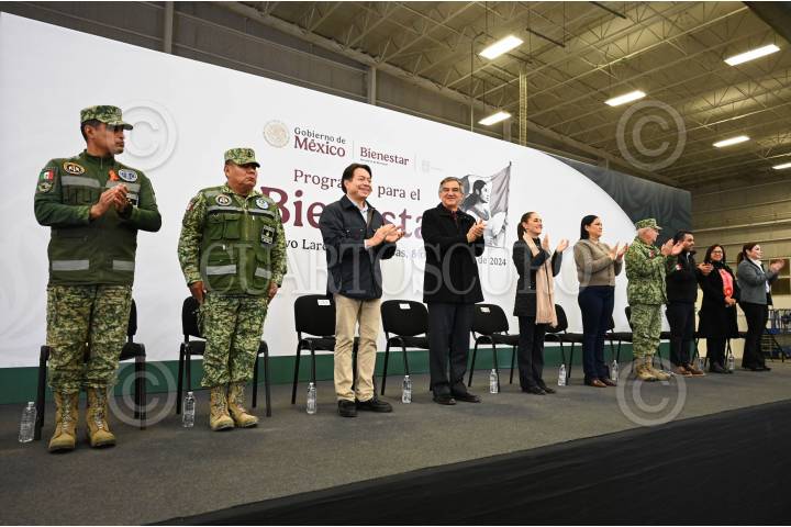 NUEVO LAREDO, TAMAULIPAS, 08DICIEMBRE2024.- Américo Villarreal, gobernador de Tamaulipas; Claudia Sheinbaum, Presidenta de México, y Ariadna Montiel, secretaria de Bienestar, encabezaron el evento "Programas para el Bienestar en Tamaulipas". FOTO: PRESIDENCIA/CUARTOSCURO.COM